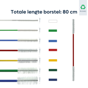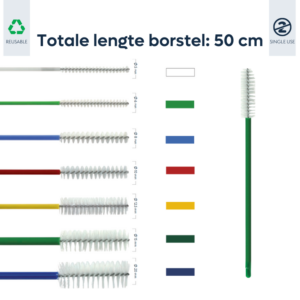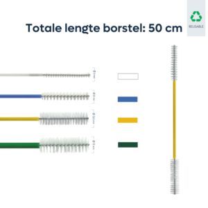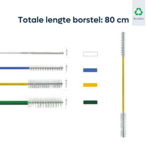 Wanneer de borstel door een kanaal wordt geleid, beweegt hij soepel mee zonder zijn reinigende werking te verliezen. Dit maakt hem ideaal voor het reinigen van kwetsbare, moeilijk toegankelijke delen van medische apparatuur. Gemaakt van hoogwaardige materialen garandeert de borstel een veilige reiniging zonder het instrumentarium te beschadigen. Hierdoor wordt niet alleen de levensduur van de instrumenten verlengd, maar ook een optimale voorbereiding op het sterilisatieproces gewaarborgd.