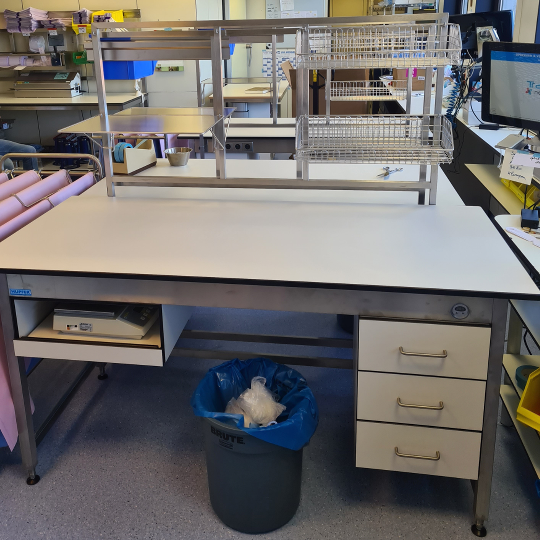 Zo is er veel mogelijk wat betreft de extra opties voor opdektafels. Veel gebruikte opties zijn; een vak onder de tafel voor het opbergen van inlegvellen, een monitorhouder, een uitsparing voor een weegschaal in het blad, een ladeblok open of gesloten en een hakenlijst. Het is ook mogelijk om te kiezen voor een uittrekbare lade onder de tafel voor het opbergen van de printer of weegschaal.