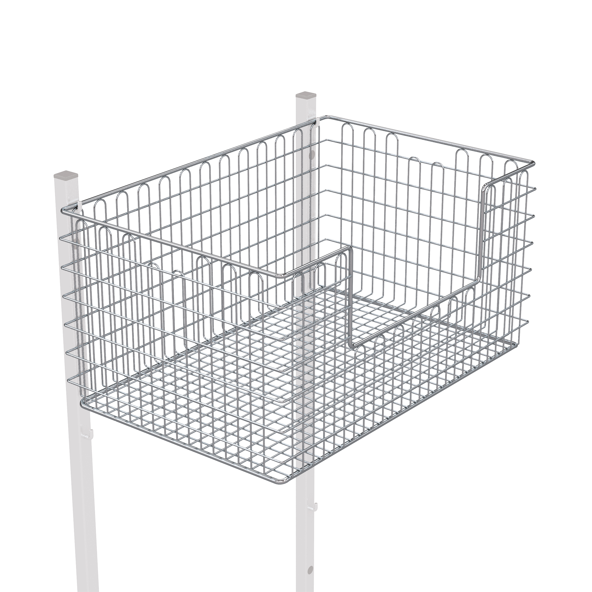 Draadmand voor transport, opslag en klaarzetten van sterielgoed in zachte verpakkingen, met opening aan de voorzijde.