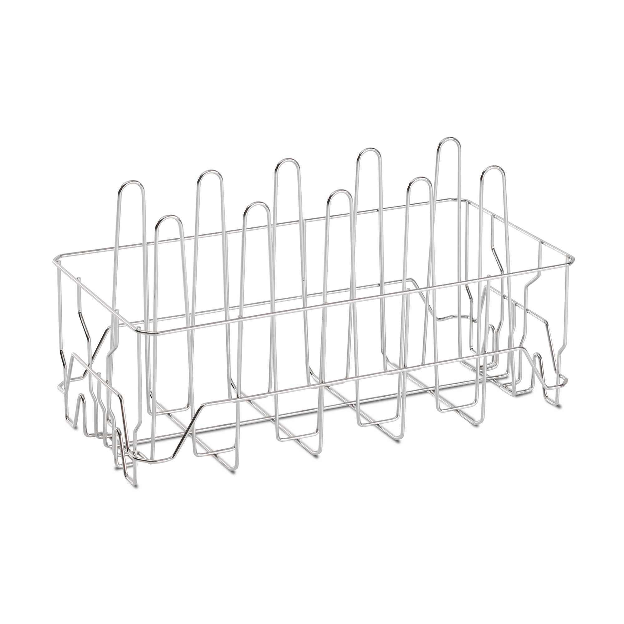 Hygiënische constructie met grote maaswijdten om te voorkomen dat niet alle plaatsen gespoeld worden, geschikt voor het aanhangen aan muurrails of hakenwagen, inclusief optie voor het schuinstellen. Beugelvormige schoenhouder-elementen voor veilig transporteren, hygiënisch feilloos reinigen en probleemloos later wegnemen van chirurgische schoenen van maat 36 – 48. Lege korven kunnen ruimtebesparend in elkaar worden gestapeld.