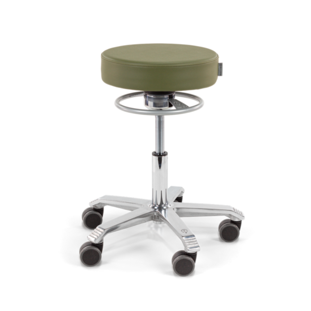 Deze kruk zorgt ervoor dat u steeds lichtjes blijft bewegen terwijl u zit. Zo neemt u met de taboeret in het ziekenhuis, de dentale praktijk of op andere werkplekken waar behandelkrukken staan, vanzelf een actieve zithouding aan. De comfortabele zitting kan gestoffeerd worden in Stamskin of PUxx. PUxx bekleding is uniek omdat deze gereinigd kan worden met desinfecterende middelen op basis van alcohol, chloor en ammoniak. Indien het belangrijk is om handen steriel te houden, kiest men voor een taboeret met voetbediening.