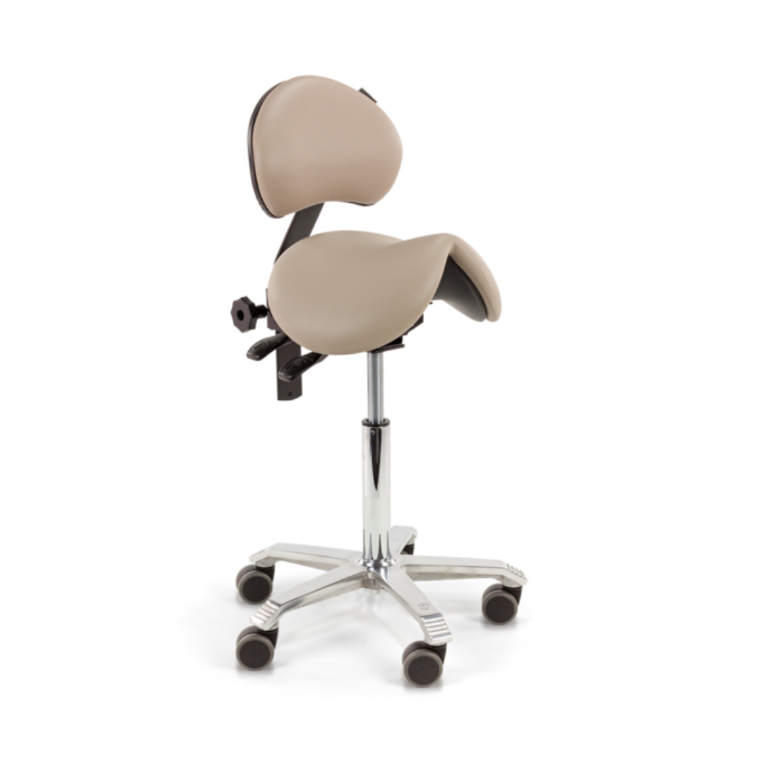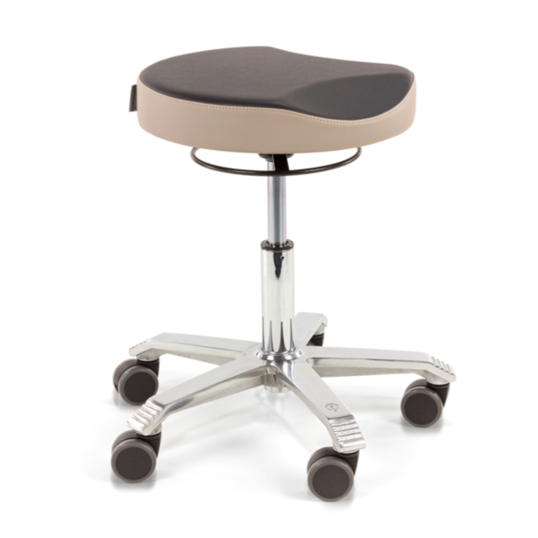 Deze naadloze variant heeft als pluspunt dat vuil zich niet kan ophopen in de naden. De zitting kan gestoffeerd worden in Stamskin of PUxx, die beiden antibacteriële eigenschappen hebben. PUxx heeft als unieke eigenschap dat deze gereinigd kan worden met Isopropyl alcohol en dat biedt uitkomst als het gaat om werkplekken waar hoge eisen worden gesteld aan de hygiëne, zoals in de medische markt. Ideaal voor werkplekken waar strenge eisen aan de hygiëne worden gesteld. Indien het belangrijk is om handen steriel te houden, kies je voor een zadelkruk met voetbediening.