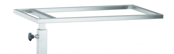 Deze overzettafel van HUPFER heeft een stabiele constructie, met een naadloos verwerkt frame van vierkante buizen en duwbeugel, loopwerk 40×20 mm en bovenbouw 25×10 mm voor het inhangen van een separate opbergplek.
