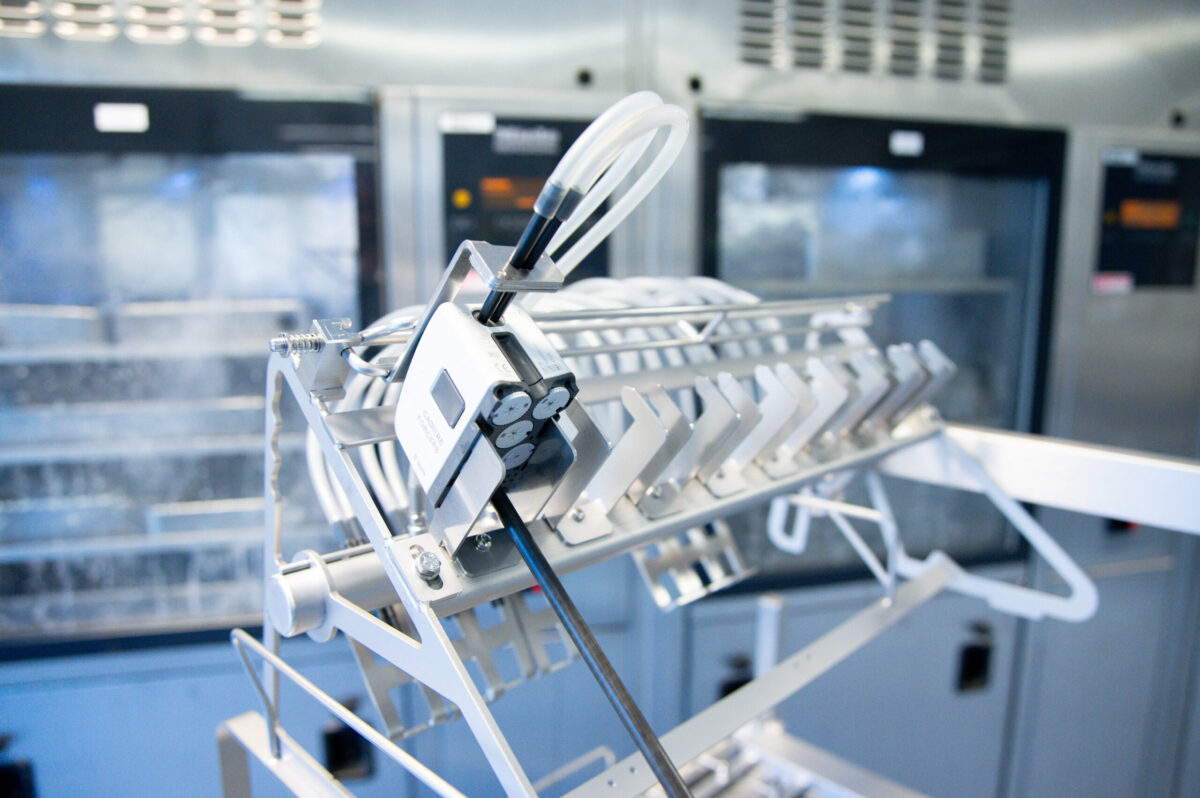De Da Vinci®-instrumenten zijn niet geschikt voor de standaard draadmanden – wat betreft de afmetingen – die normaal gebruikt worden voor reiniging. Daarom was het noodzakelijk om speciaal daarvoor geschikte manden én bijpassende transportkarren aan te schaffen. Zonder deze voorzieningen zouden zowel de sterilisatie als het veilige transport van het instrumentarium niet mogelijk zijn. We moesten goed nadenken over de vraag: hoe zorgen we ervoor dat deze kwetsbare instrumenten na sterilisatie onbeschadigd en gebruiksklaar op de OK aankomen?